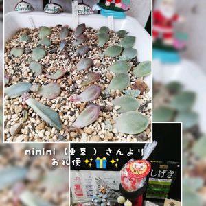 こんにちは🍀 🏷️毎月13日と14日は葉挿しの日参加します🎶 こんなに寒いのに 葉挿しbabyちょこんと でて頑張ってます かわいい❣️ 先日 mimimi (東京 ) さんから お礼便✨🎁✨が届きました🍀 手作り かわいいビーズキラキラ✨💍✨ツリー🎄をはじめ サンタ🎅ブーツ👢お菓子 多肉さんetc. お心遣いありがとうございます 繋がりに感謝です🍀
