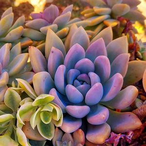 普及種ばかりですが、 大きく育ち どっしり構えている エケベリアたち大好き😍 ①ゴールデングロウ ②オパリナ ③ルブラ ④ブルーカールス ⑤ラウリンゼ