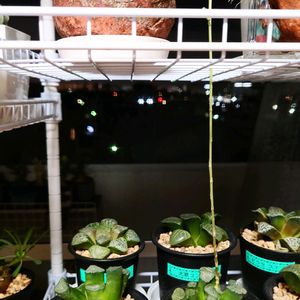 おばんです 🙂↕️ 🪴 ハオルチア 万像 🪴 ニョロン 🤣 成長は遅い方だと思ってたけど なんのその😑花芽が上の段まで🌿 明るい窓際だけどちょっと徒長気味😱 🏷️ニョロン(26日)の日