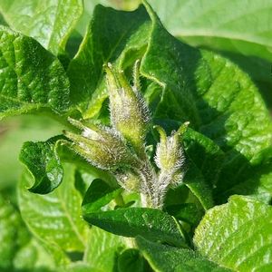 今日のお花🌿ジャガイモ🥔 夏野菜の終わった8月末 近所のおじさんが 「じゃがいも植えてみたら」 と🥔🥔🥔🥔🥔🥔🥔🥔 種芋をくださいました。 8月中に植えるようにということで 即植え付けると 現在このように葉っぱがフサフサ🌿 真ん中にかわいい花芽があって 花の咲くのを今日か明日かと 毎日楽しみにしているのですが…… もう半月ぐらい この状態なのです( ´◔‸◔`)?
