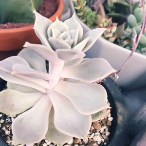 同じ種類のエクメアが相次いで溶けました。 牡丹の花が終わるように、根元から折れてしまいました。 しかも、子株から順に親株まで、計4株が同じ枯れ方でした。 心当たりは、他の種類の鉢植えエクメアは生きているので、10度未満ながらも屋外の寒さが原因ではない気もしますが、葉色も変わっていたので低温障害かも? 元々冬場は水苔植えで無加温ビニールハウス内だったので、今回以上の寒さには耐えていました。 あとは根元が赤いヌメリが出て傷んでいたので腐敗の原因があったのかもしれません。 ちょうど枯れる前一週間程度の頃に素焼き鉢植えされていた親株の世代が終わったので、板付に植え替えたりしてました。 温度と植え替えで変化点が多すぎたかも? まだ寒暖差もあるので、外管理でなく室内管理だったら防げたのかなとも思ったりもして、反省です。