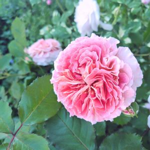 今朝の庭から ボスコベルにジェフアーティストとシャーロットを添えました。 今年は置き場を変えて、ボスコベルがよく咲きます。