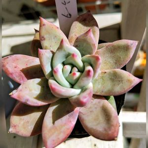 おはようございます😊 今日の天気は曇り☁️ 昨日はお天気が良く多肉日和☀️.° 無人販売の十色多肉さんで可愛い子達を狩って来ました♥️ クィーンオブピーチ コロラータ 白水晶 ブルームーン (リンゼアナ×ブランデティ) ×シムランスラグナサンチェス キャロライン 6つお迎えしました❣️