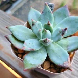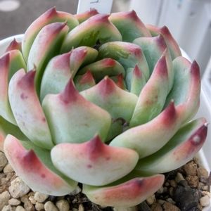 緑色多肉の中赤系多肉があると嬉しいです❤️ この形はいつまでキープできるやら😅 初の夏越し頑張れ💪
