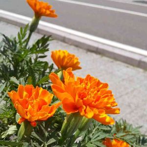 道路脇の花壇にて。マリーゴールドは酷暑にも負けず咲いています。 道行く人を元気づけるかのように✨✨✨✨✨ありがとう。