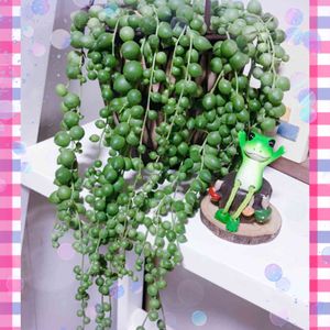 今日のお花❣️グリーンネックレス💕もっともっとモリモリにしたいなぁ😁西陽のベランダ💦グリネさん焼けないように日陰づくり😅