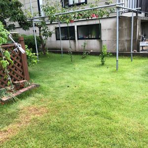 数週間ぶりにやっと雨が降りました。 何となく芝生が枯れているなぁと思っていたのですが、雨が降って元気な所と枯れている所がはっきりと分かるようになりました。