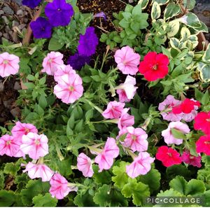 スーパーチュニア ビスタ·ミニ💜 まだもりもり満開とはいかないけれど…満足😚 色合いの違う2種類が混ざっている?蕾が次々と増えてきました💞