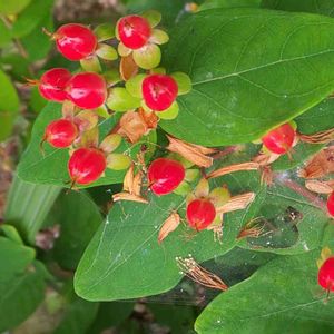 おはようございます♪ ❣️ヒペリカム(実)❣️ 挿し木からのヒペリカム 全てが初めてです〰️🤗 鮮やかな黄色の可愛らしいお花は一日花でした♪ 花が終わった後に可愛い実が色づき長く楽しませてくれそうです🎶💞 爽やかな晴れ 風がやや強いかな🍃 穏やかな1日になりますように。。。