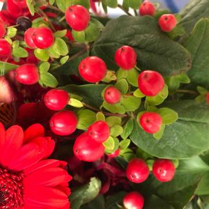 お花屋さんの🌼🌿ヒペリカムの黄色い花と一緒に赤い綺麗な実が沢山付いていて素敵でした(*゚▽゚*)❤️🌿✨
