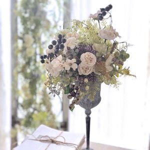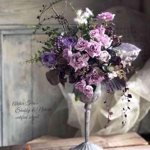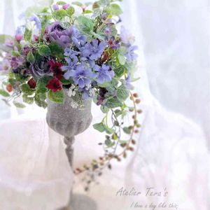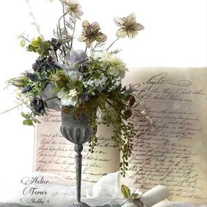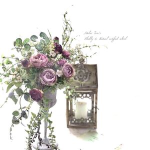 プロコース生徒様の作品。 ハイグラスアレンジです。 とっても上品で、エレガントに 仕上がりました。