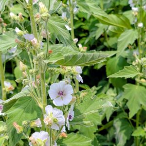 アニソドンテア・マルバストロイデスの花がほぼ終わったら、入れ替わる様にマーシュマロウの花が咲き始めました。 マーシュマロウの方がやや大きく色は薄いですが、雰囲気はよく似ています。 播種から数年経ち、根茎も大きくなった様なので、昔の製法でマシュマロが作れるかもしれませんが作りません😆👍