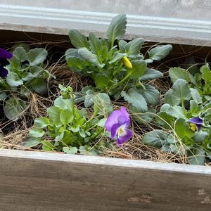 木製プランター寄せ植え~ 20240217 一段と元気モリモリのオリジナルビオラ、ミックスカラー😊 ①後ろ姿もイケてる子です✨今日は青空をバックに。 ②自由に伸び伸びした感じの咲き方が好きなんだなぁ。茎スラリ細くて長い、フリル無しが好みみたいです☺️ ③こんな風にアンティークなアプリコットオレンジ系の子も |д゚)チラッ💕 ④1月の寒さで、チリチリ枯れ枯れになったリーフ類、少しずつ復活中💪あきらめない、あきらめない。ここからだよ、いい季節は🤗 今日は、丁寧にチリチリに枯れた部分を取り、綺麗にしてあげました✨🌱 ⑤正統派の正面から 3月下旬~4月中旬には、前後左右に溢れるように咲くイメージ(理想) このビオラは、なんかいい香りがするんです。タイムも触る度に、スッ~とするハーブな香りが💕 思いがけず出会った子たち。 花ともさんが言ってました🤗 こういうの『一期一会』って。