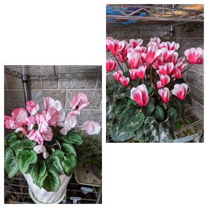 シクラメンの花芽がいっぱいなんだけど葉っぱもいっぱい過ぎて葉組みをしても花芽が埋もれてしまう💦新しい葉っぱが次々出るから古い大きな葉っぱは除去したほうがいいのか🤔左側のシクラメンは花茎が短くてなんかイマイチ💦