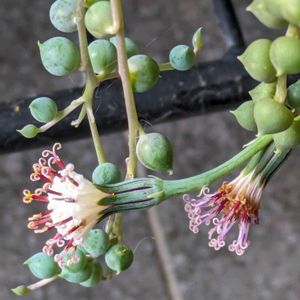 風除室はグリーンネックレスの香りがムンムン✨でも私しか気づいてない😅今日は気温が高いからいつもより香りが強い…と思ったら1つだけ花の色が違うのを発見😳