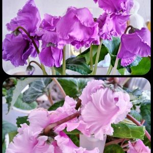 オステオさん 夏越し成功 沢山のお花を咲かせてくれました🟣🤍☘️ シクラメンさん真っ白から 淡いピンクになりました そろそろ終わりです 🤍〜🩷☘️