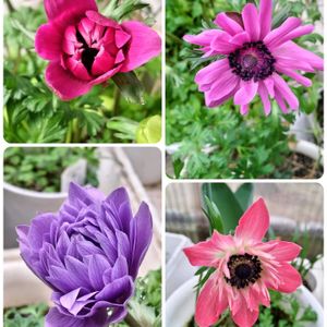 球根からのアネモネが咲き始めました💜🩷💗💕 2️⃣枚目は蕾です もうすぐ開きそうで す🤍💗
