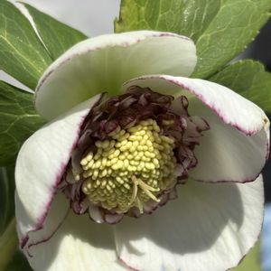 おはようございます☀️ 今年初の日光浴パート2(1/26) クリスマスローズ🤍 コロンとした蕾が開きました😍 外に出して気持ちよさそう〜☀️ 風除室だと陽射し少なくて風もないしやっぱり外いいですね〜💕 ⑤🌱もお花もシックな素敵なクリスマスローズ💕 寒い時期に咲いてると花持ちが良い🙆♀️ 地植えや外で越冬のクリスマスローズは雪解け後咲きますが、春にしては暖かすぎる気温が続くと花持ち悪くて😭 春は春らしい気温の方が春のお花長く咲いてくれるので涼しめがいいなぁ😭 ☁️ 2℃/−6℃ sd多弁イエローグラデーション✖️ dd多弁グロスグラデーション