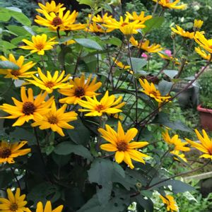 ヘリオプシスが開花しました 葉色が濃いのが特長で 花を引き立てます