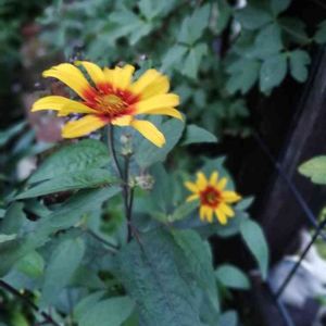 ヘリオプシス バーニングハーツ 別名 姫ヒマワリ キク科 花言葉『憧れ』 (葉の色が濃く、カラーリーフ としても楽しめる。夏に なると黄色い花が咲き葉色 との対比が美しい。花芯に オレンジの目が入る事で 更に夏らしく元気のある 花である。) 小雨が降る中一際綺麗に 咲いていました。😍