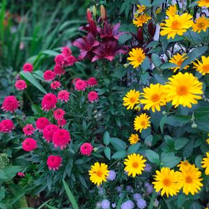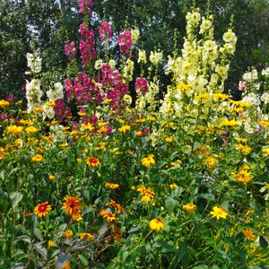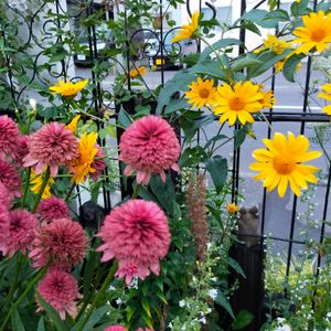 夕方の庭から 濃いめの花ばかりが並んでますね