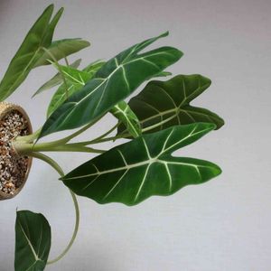 我が家のアロカシア グリーンベルベットが下をいつも向いていて何か悩みでもあるんか😢 アロカシア博士もしいたら助けてくださいー!! 原因が分からない😢水結構良いスパンであげてるつもりなんだけど、足らないかな?! 下向いてるけど、茎は太くて硬いのよね... どしたん🥲 でもカッコいい🪴💚