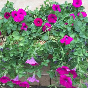 💖サフィニア パープルミニ💖 私の目にはどうしても パープルというよりは濃いピンクに 見えるんだけど😅💓 今年は絶不調のサフィニアさん😅 (☝️ありえない😅) やっとなんとかこんな感じです💕