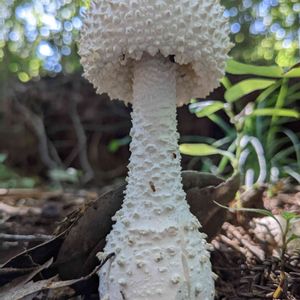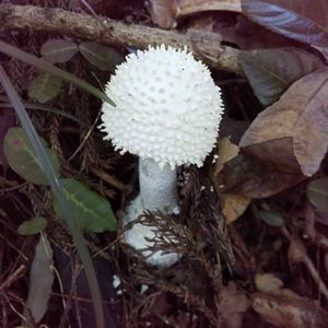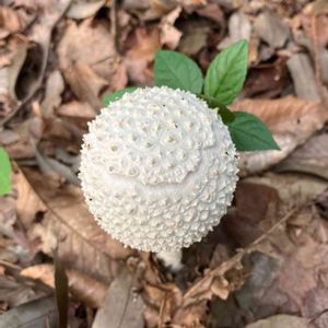 シロオニタケ(白鬼茸) キノコの一種 テングダケ科 原産地 日本 中国 朝鮮半島 丘陵地公園散策してたら、こんなキノコを発見…。😮😮 まっ白なので目立ってました。 始めてのキノコでした。🤗 カサに尖ったイボがいっぱいです。 広葉樹の林やアカマツ等の林や地上に発生します。🌱🌱 毒を持ってて、食べると胃腸、消化器系の異常をきたします。😱