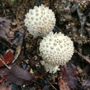 名前を教えて! たごさくさんに「シロオニタケ」と教えていただきました😊 真っ白な傘には尖ったイボイボ? 綺麗だから毒キノコ🍄かなぁ😔 道の少し入ったところで 大きくて真っ白な姿😊😊😊 2019.9.20
