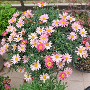 こんにちは👋😃 又☔になりますね~😵 続くのは困りますが~😅 マーガレット達が少しお休みをしてたり、まだまだと頑張って咲いてたりさまざまです🎵 でもしょんぼりしてても可愛いです💗 後2種類はしっかりお休み😌🌃💤中です
