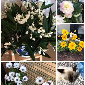 母の花です♡実家の猫🐱です♡ ペット飼ってるフォロワーさんのpic観ていいな〜と羨ましく思ってたんです😍 今回私も実家猫🐱と実家花のコラボpicアップして見ました😉 お花の名前教えて下さい🙇♀️