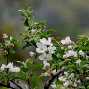 これ、リンゴの花です。 GWに青森に行った時の写真です。 まだ蕾も多かったですが、とっても良い香りでした。 お岩木山も見れたし♪ リンゴの花は、今日あたりが見頃だよ、きっと^w^