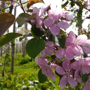 濃いピンクのりんごのお花です。(品種:ヒリアー)他のリンゴの花より大ぶりで目を引きました。(弘前りんご公園にて) GWに青森に行った時の写真です。 実は成るのかな・・・成りますよね^^; リンゴだもん。
