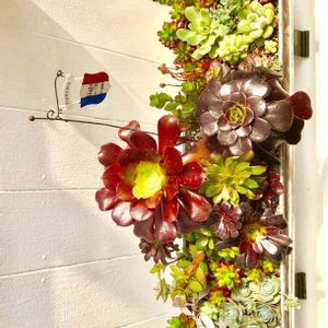 我が家最大の寄せ集め植えです✨🎶✨、黒法師とバイオレットがたくさんあったので集めてど真ん中に…あとは その辺に居た子達を集めてどんどん入れていきました✨🤗✨。多肉棚が スッキリ空きました💕、また新しい子迎えられるわぁ✨🍀✨。