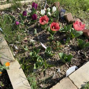 植え損なって2月に植えたチューリップ😂 首が伸びずに花開きました。小人さん達です。