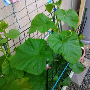 ポットで育てた苗を順番に畑やプランターに植え付け。 すくすく成長中🌱 青大胡瓜、金俵甜瓜は植え付けた頃と比べたらだいぶ大きくなった😊 マイクロトマト、万願寺とうがらし、錦糸瓜はまだ植え付けて間もないのでこれから。 万願寺とうがらしは早速虫に食われてる😓 対策しつつ見守り中。