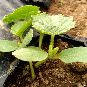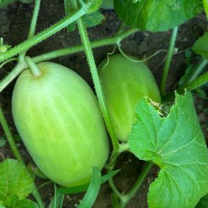 金俵甜瓜(マクワウリ) 今年は直播き栽培してみました 種まきして3週間が経ち 双葉🌱本葉が出てきました 実るかしら😅 2025.6-101