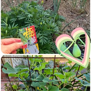 今日のポイント わきめ ・丸鞘オクラエメラルド ついに脇芽から収穫できるようになりましたよ~ 脚立に乗っての収穫は面倒になったので、ぐいっと引っ張ってしならせて収穫してます ついに 一番下の脇芽を伸ばして収穫できるようになりました 脇芽の収穫より摘芯を先にすると枯れてしまいますので要注意😊 茹でてタッパーに入れて冷蔵庫へ 夕食の一品できました🙌 ・金俵甜瓜 数を数えてみましたら 1株から大小合わせて15個ぐらいはなってますね 持ち帰って追熟させて食べてみようと思います 甘くなるかな~? さて、写真の収穫した黄色いマクワウリ… この中には違う物が混ざってますよ~ 見た目はそっくりですけどね🤭 右端は なんとかまだ毎日収穫できているキュウリです🥒 オリンピック ゴルフ表彰式見てましたよ🥉 フェンシング男子団体🥇女子団体🥉 脇目もふらず活躍される姿に感動の日々です 頑張れ日本🇯🇵📣