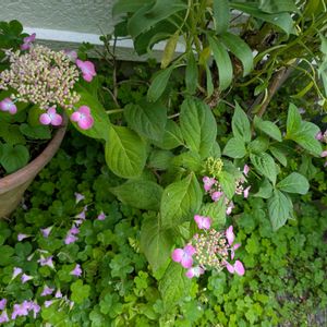花壇のアジサイも咲いてます 山アジサイ2種 古株のピンク 柏葉アジサイ