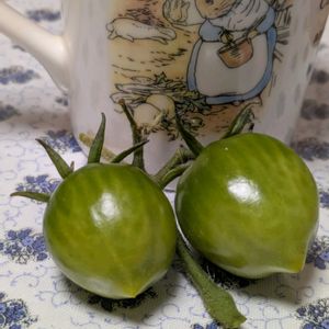 溢れ種からのトマト🍅 葉や木は枯れてたのに💚 何と可愛い青トマトが2つ残ってました、ダメ元で… 暫くキッチンに置いてみよう😆