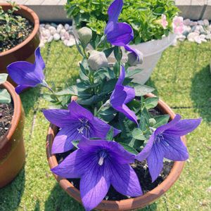 さっそくキキョウが咲いた🥰 紫色が素敵❤