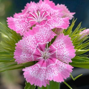 ①美女ナデシコ(ミックス) 秋の種蒔きより咲き始めていま す🩷🤍🩷 ②伊勢ナデシコ 開きました 昨日夕方撮ったも のです🩷🩷🩷 ③カワラナデシコ 秋の種蒔きより 沢山咲いてき ました💜🤍🩷 ④グラジオラス 花壇で咲いています🩷 ミニとはいえ支柱が必要ですね ⑤紫陽花の真花 綺麗に咲いています (常緑紫陽花 春風のマーチ) 🩷🩷🩷 🥰🌿