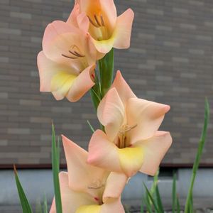 歩道の花壇で グラジオラス が綺麗に咲いていました。