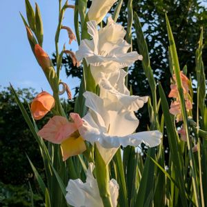 グラジオラスの白🤍🤍🤍🤍🤍が咲きだしました。🥰\(^-^)/