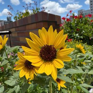 ヒマワリ ソルシーカー ハニー レスキューして40日 順調に咲いております🌻 1株で100輪以上咲く超多花性だそう 私のお世話次第で結果は随分違うのだろうと思うので頑張りたいところです 今は6号鉢なのです 鉢増しすべきよねやっぱり🌱
