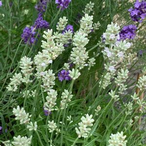 ラベンダー 白のラベンダーが咲きました。 後ろは紫色のラベンダーです。