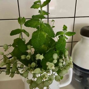ハーブ🌿 アップルミント(マルバハッカ) シソ科 ハッカ属 スッキリとしたハッカに加え、 リンゴのような香りがする。 ハーブティーとして用いられるこ とが多い。単独で使うと青臭さが 際立つので、私は紅茶や、他のハ ープと、ブレンドして使う。 繁殖力旺盛。今日は切花として。 草丈 60cm程度 葉 丸葉 細かい毛で覆われ ている。 花 白。シソに似た地味な花 シレネグリーンベル ナデシコ科 マンテマ属 フーリンのような、ふっくりとし た萼片を持ち、垂下がる咲き方が 可愛い。北側にひっそりと咲いて いる。