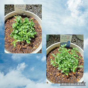生長記録🌼 サントリーさんのアズーロコンパクト2苗植え付けました🌱 (左:スノーホワイトスノー、右:スカイブルー) モフモフになぁ~れ~(੭ु´͈ ᐜ `͈)੭ु⁾⁾