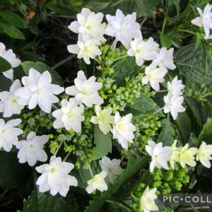 ①②③我が家のお庭 イヌツゲの小さなお花がビッシリと咲いてます いつの間にか居着いたドクダミも綺麗😂 プランター内なので増えすぎないとは思います😅 今年初めてたくさん咲いたテイカカズラ ④⑤ ハタケニラ