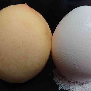 ( ^-^)ノ∠※。.:*:・'°☆ ( ̄□ ̄;)!! キャー!タイヘン! 今朝 見たら👀 ころりん!って…………😓 こんな 可愛らしいsize💦 だけど めっちゃ 美味しい🍑カッタ😋 初収穫!(*^^*) ウレシイネ! 右側 🐔さんの 🥚! 左側 ころりん!した🍑